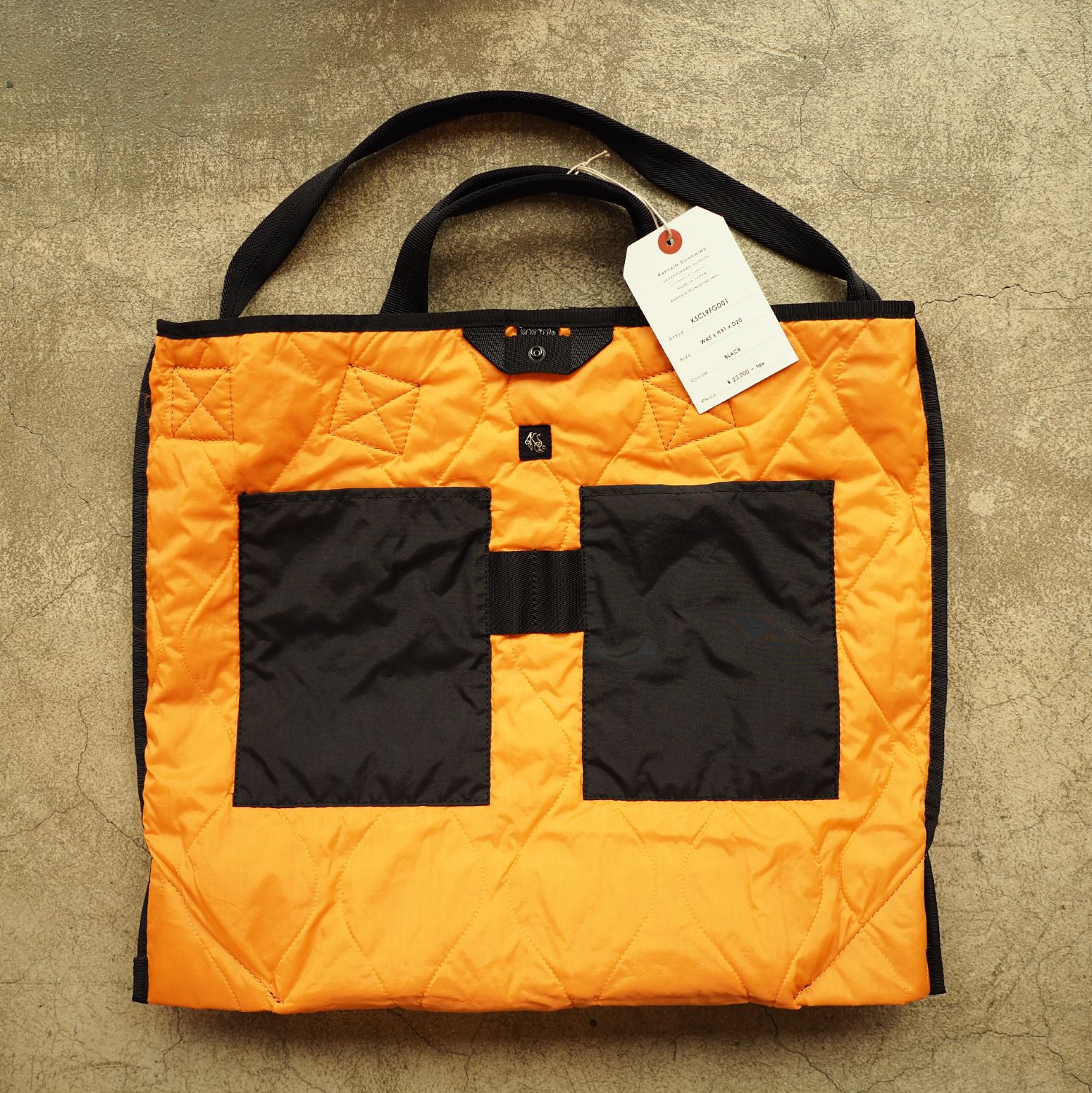 キャプテンサンシャインが定番として取り組んでいるPORTERとのコラボレーション企画。 今回は、ミルスペック仕様をイメージしたキ ルティング加工やヘリンボーンナイロンテープなどを駆使した トートバックが製作されました。 製品洗い加工を施しているので、縫製部分にパッカリングが出ており独特の雰囲気を持っています。 普段使いにちょうど良いサイズで、ショルダーベルトが付いており肩掛けも出来る2wayデザイン。 そして、何より大きいポイントがもうひとつ。 コラボアイテムとして内側にオレンジキルティングを使用出来るのが今回で最後になるとのこと。 今後はオレンジライニングのコラボアイテムが発売されることはありませんので、このバッグが最後のオレンジライニングモデルとなります。23000円(税別)