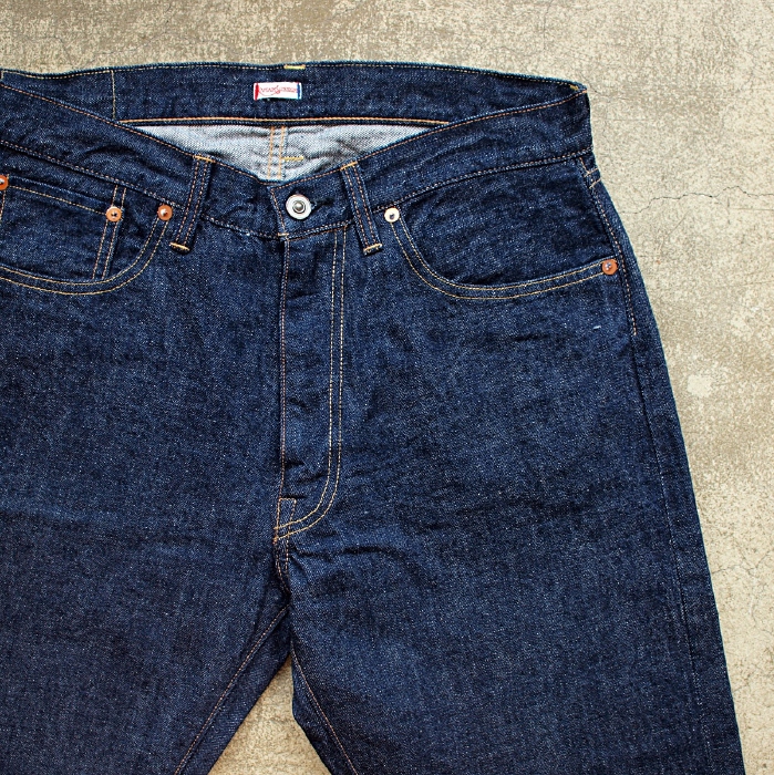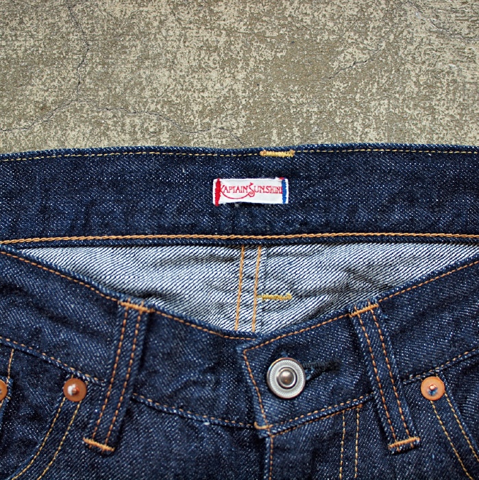 1960S 東海岸のジップフライテーパードからインスピレーションを受け、生まれたモデル。 生地にはキャプテンサンシャインオリジナルのセルビッジデニムを使用。しっかりとしたムラ感があり、 ワンウォッシュの状態でも非常に良い雰囲気がある。 生産は、UNIONSPECIALを中心にクラシックなミシンを使いこなし高い仕上がりを誇る 岡山・児島のファクトリーにて行われ、見えないところまでの縫製仕様のこだわりが履き込んだ 後のパッカリングの雰囲気を倍増させる。 新品の状態でも十分に雰囲気のあるパンツであるが、 本領発揮するのは履き込み、洗濯を繰り返し体に馴染んできた後でしょう。 ¥18000(税別)