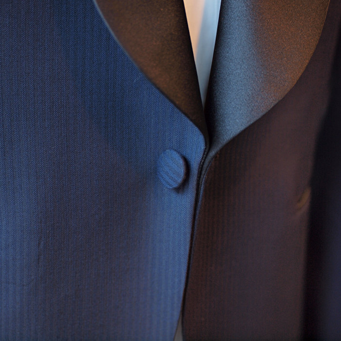 ネイビーヘリンボーンを使ったタキシード。